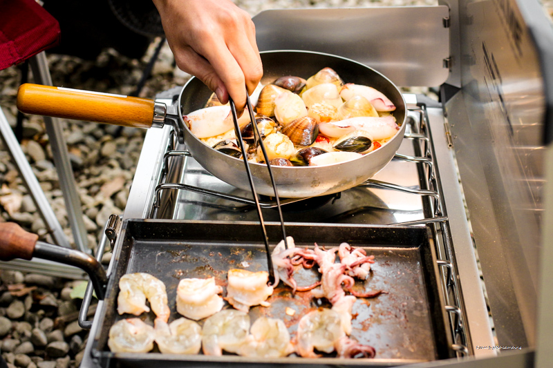 紮好營,肚子很餓,vito 煮了很提味的海鮮飯,備料與方法很簡單,是露營的好食物。