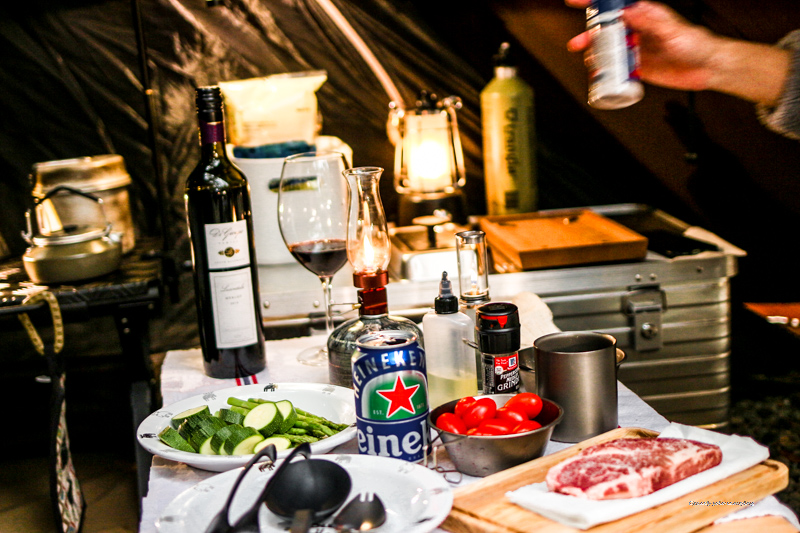 出發前,決定這個裝備不能省…,替自己帶一瓶好紅酒與玻璃紅酒杯,慢慢享受在森林裡的夜晚…。夜晚的營火溫暖甜點,是vito最喜歡的小湯圓,薑糖片熬10’,放入小湯圓與二砂煮熟即可。