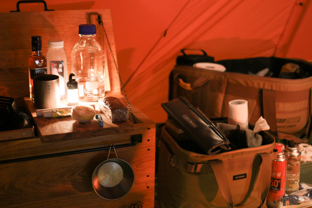 我喜歡一個人露營,帳篷裡擺著喜愛的生活用品,床上舖著厚厚的羊毛被,晚上把自己洗得很乾淨暖烘烘的,煤油暖爐放在帳篷裡,營造一個溫暖舒適的秘密基地,暖爐上煮著一鍋濃濃的薑糖紅豆湯,飄著香氣…。