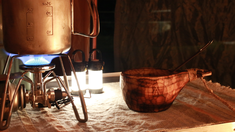 知道有寒流,搭了內帳,厚厚的床墊,地面舖上美麗圖騰的Pendleton流蘇羊毛毯,將書桌降至最低,席地而坐的椅子…。掛上串燈泡,點上煤油暖爐,我的帳篷真的十分溫暖舒適。