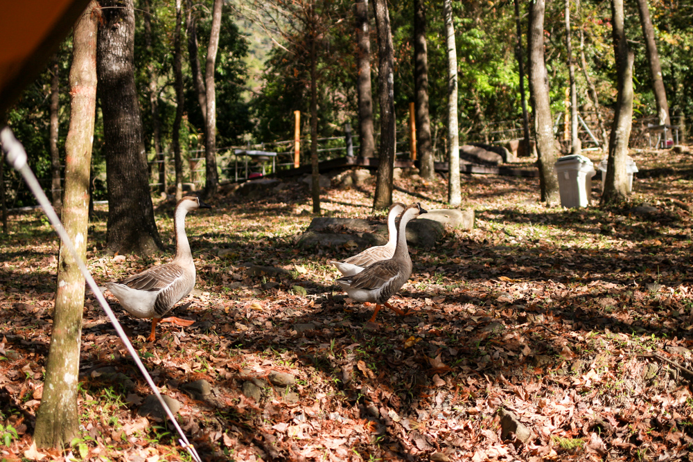 這裡彷彿是日本山梨縣道志の森キャンプ場,富有自然的廣大森林區,設施完善,暖和的冬陽從樹縫撒在厚厚的落葉上,是冬日的蕭瑟之美…。