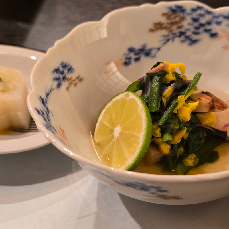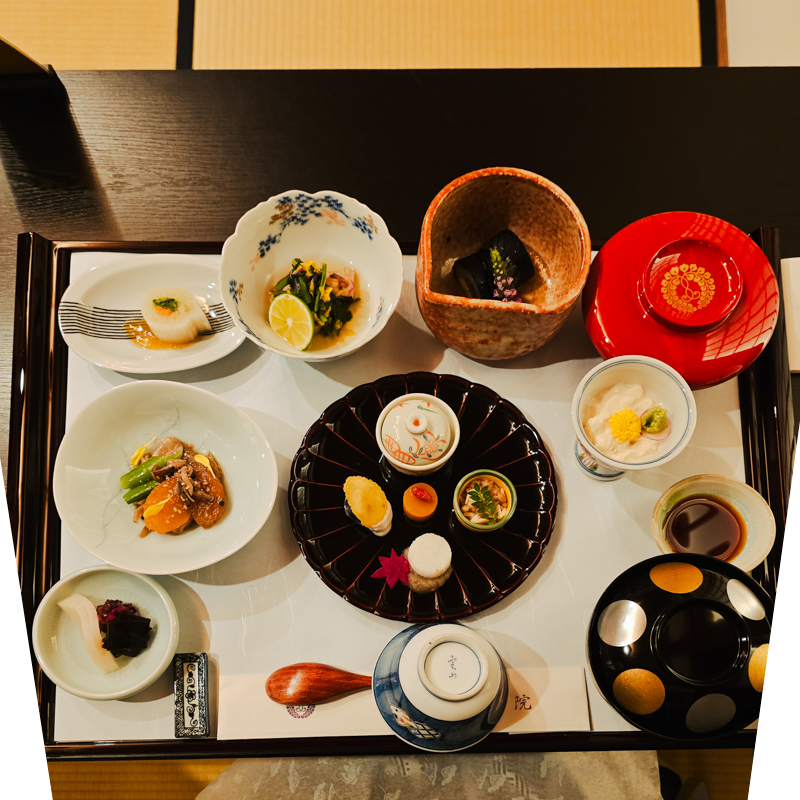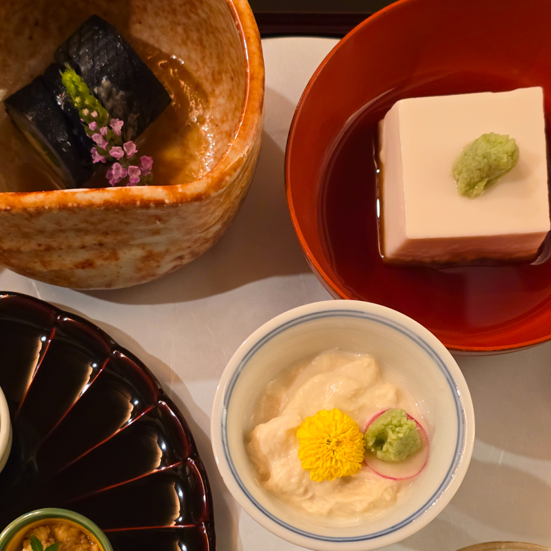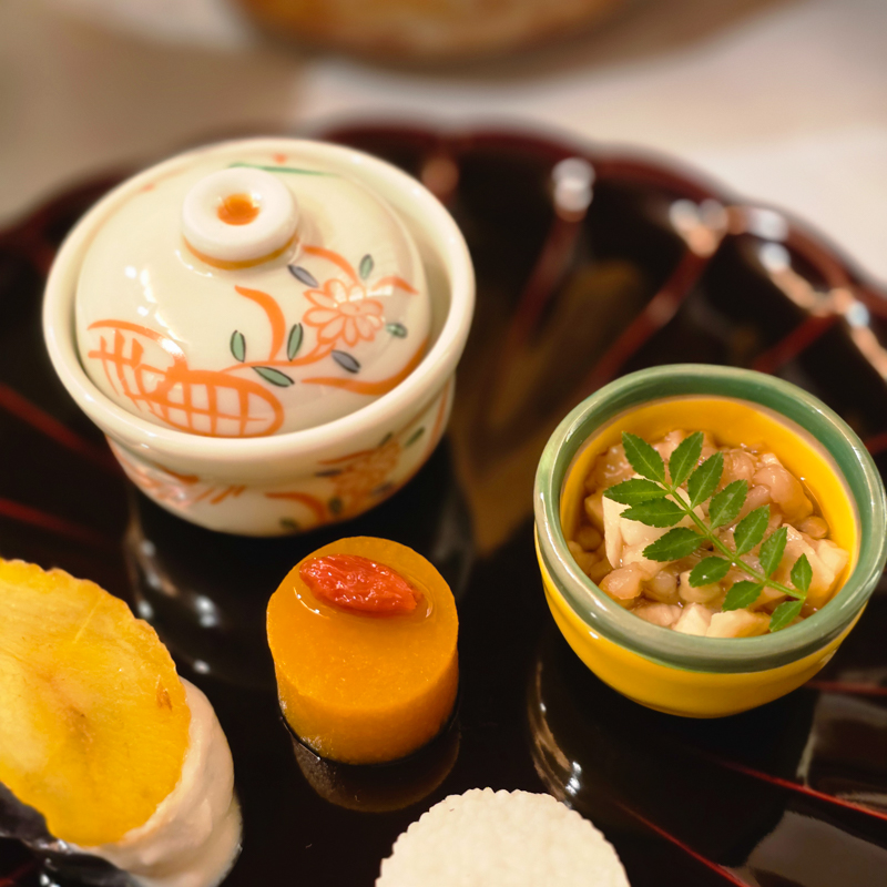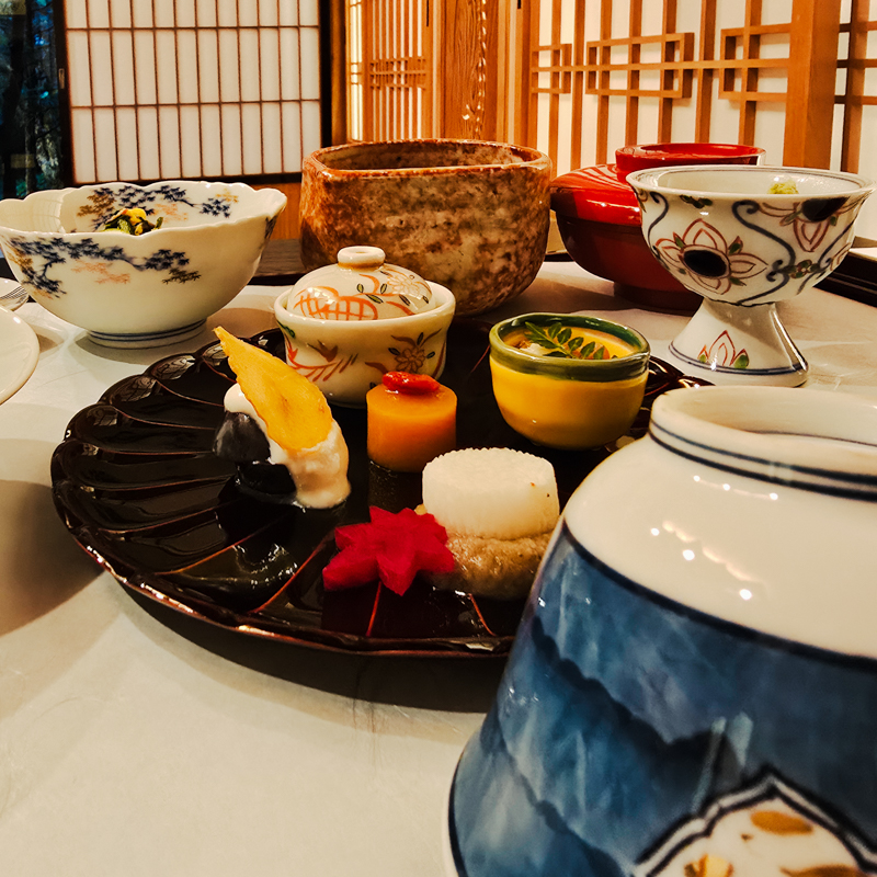 傍晚五點半,精進料理藥石開席。特別御膳,寺中遵守食材戒律,香積廚房的手藝出奇精妙,每一道都如懷石料理精緻,豐盛深刻。