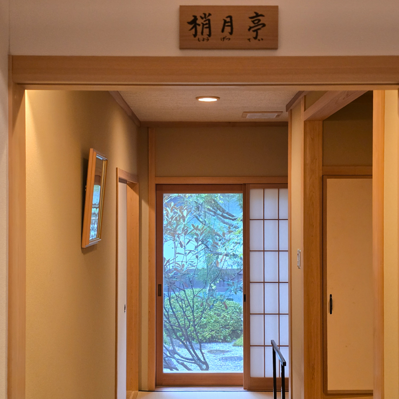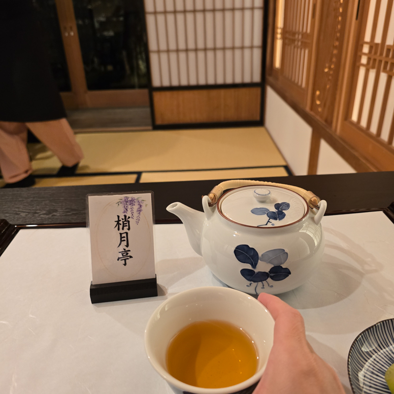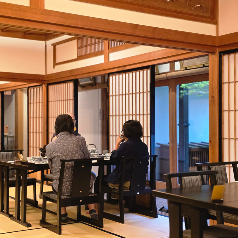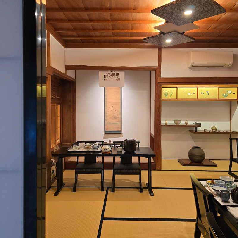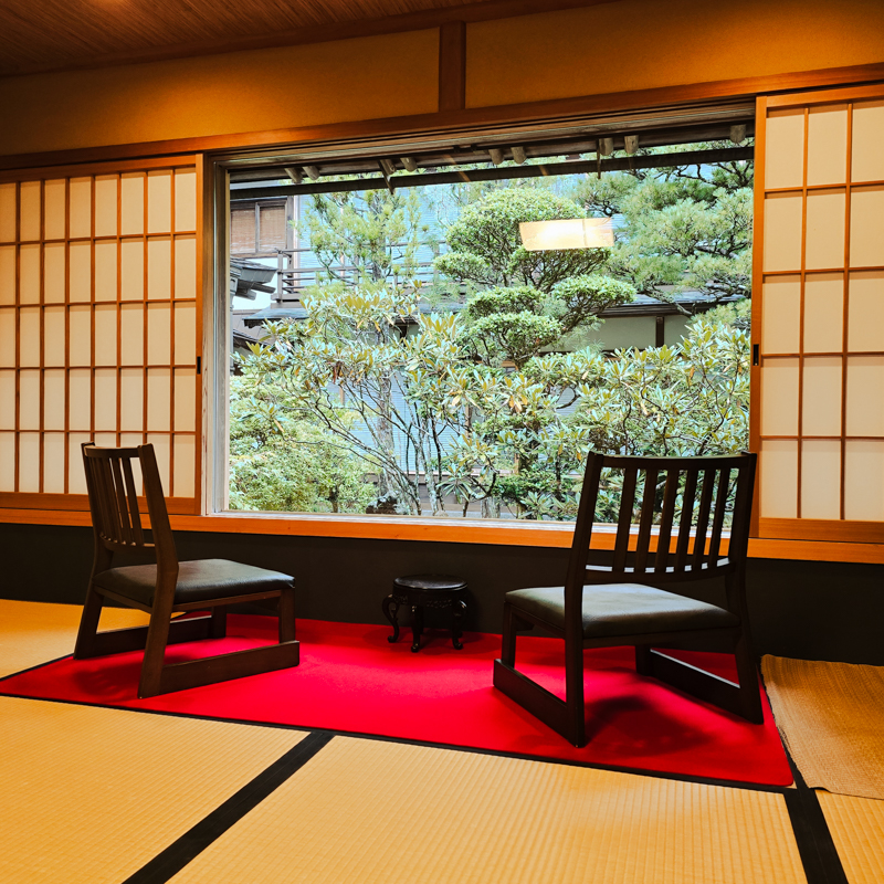 臥房比預期完備,窗邊的榻榻米座椅與小茶几,是為旅人準備的一處安身之所。傳統的熱水瓶,泡壺熱茶,拆開豆沙饅頭,庭院中竹筒流水涓細滴落。