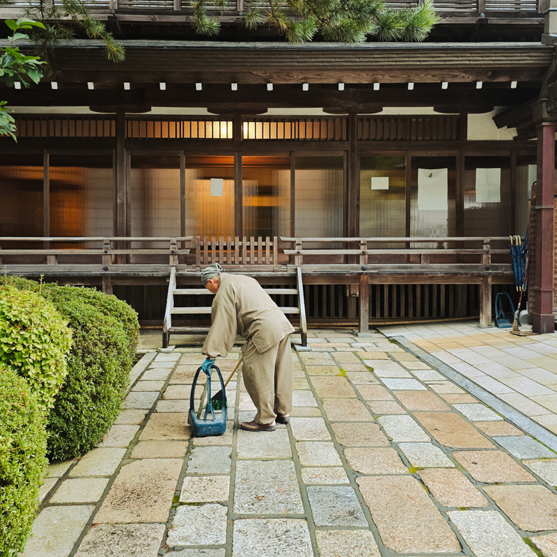 整座古寺院環繞著木造長廊,腳掌貼著榻榻米,塵世一切彷彿卸下…。