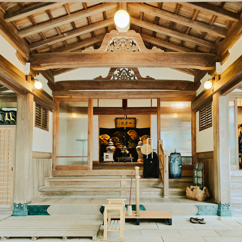 住持穩步入殿,點燈、焚香,僧侶整齊誦唱,梵唄聲迴盪於堂間。參與的人不多,多是日本老婦人。她們雙手合十,姿態溫柔而堅定。我也寫下「御祈禱(Gokito)」,祈願家中平安。