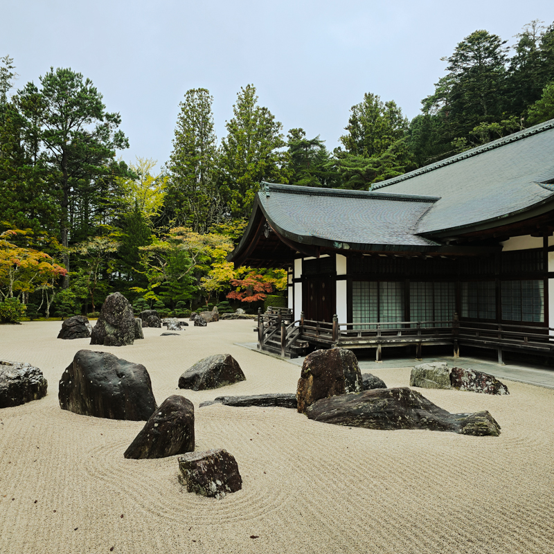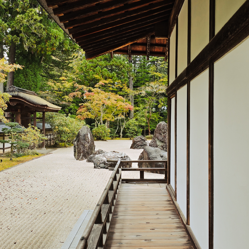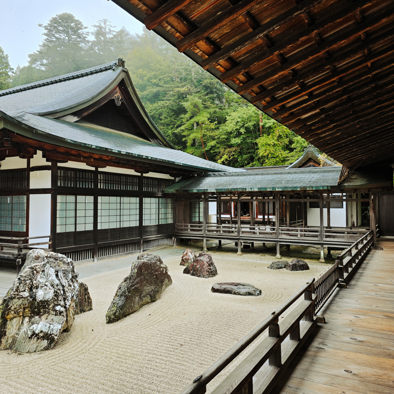 西元八一六年,嵯峨天皇賜予空海法師整片高野山。空海精通建築工法,以壇上伽藍 (僧侶聚集修行道場)為構想,最先興建的,便是金剛峯寺。