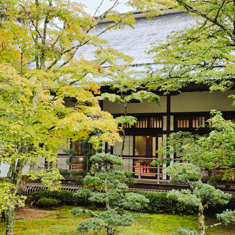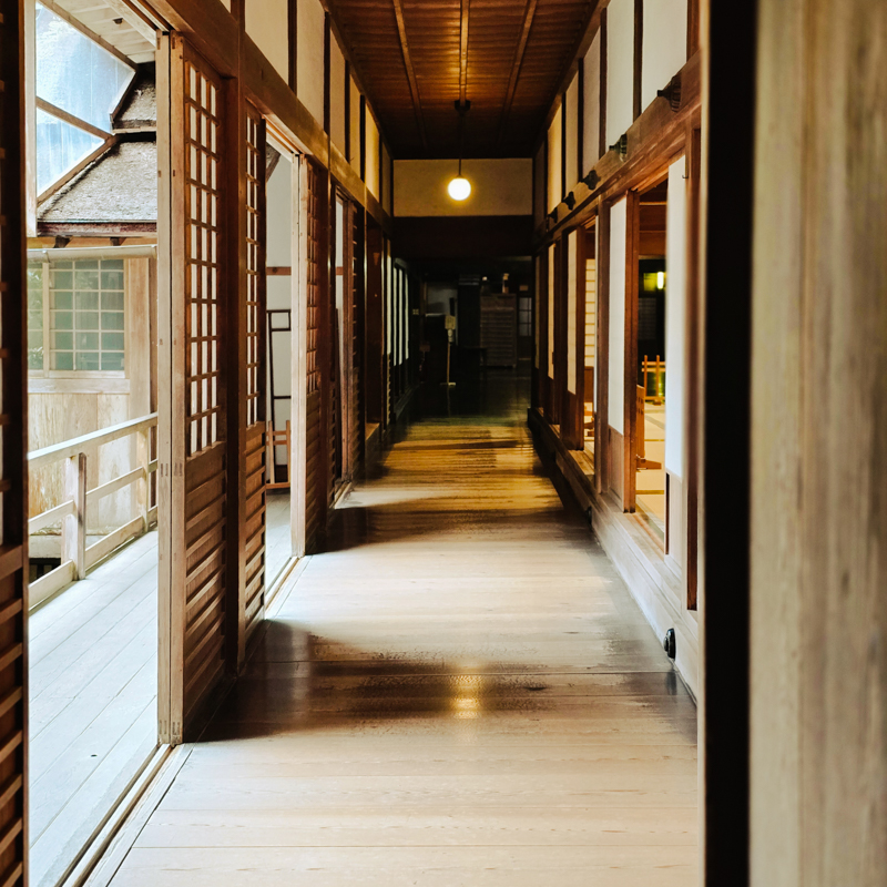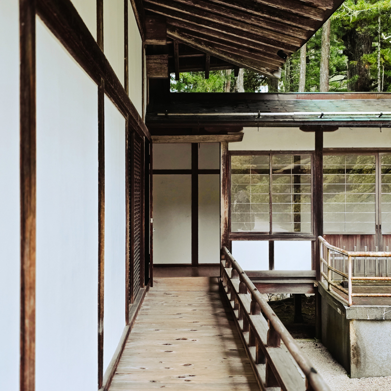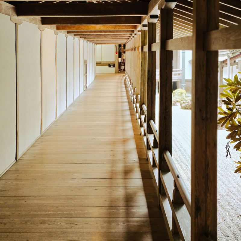 總本山的主殿,以木構築成,有大唐寺院的遺風。穿行於一重又一重的迴廊,千年木屋在光影間呼吸,靜默而有生命,與日本庭園的幽寂相融。