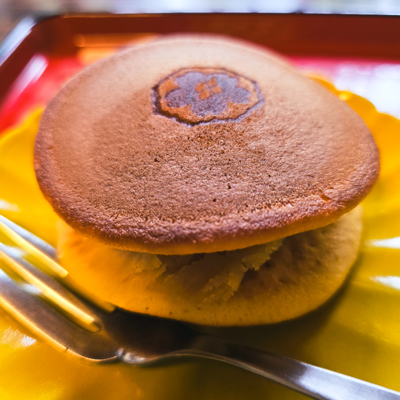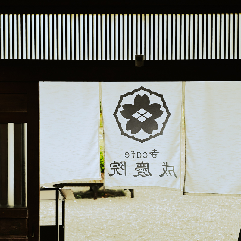 雨中步行久了,想找個地方歇歇。出寺門,看見「寺café 成慶院」招牌。往上尋去,咖啡店藏在寺院的庭院裡。坐在榻榻米上,點一杯熱咖啡與地瓜銅鑼燒,竟有一種不可思議的幸福。