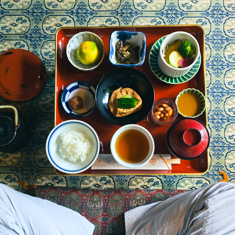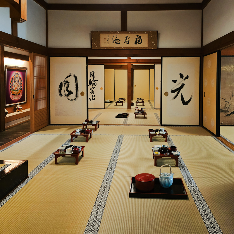 晚齋與朝齋在房中享用,素味淡雅。夜裡,房間偏僻,洗手間在外,微有膽怯,高野山最後一夜,未安睡。深夜坐在蒲團,為自己泡壺熱茶…。