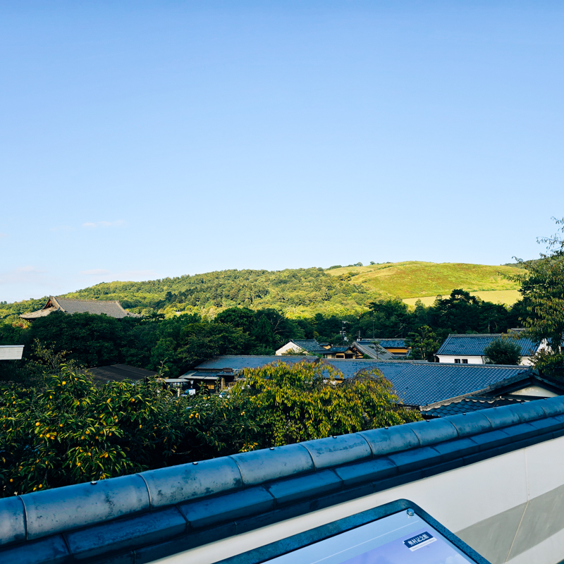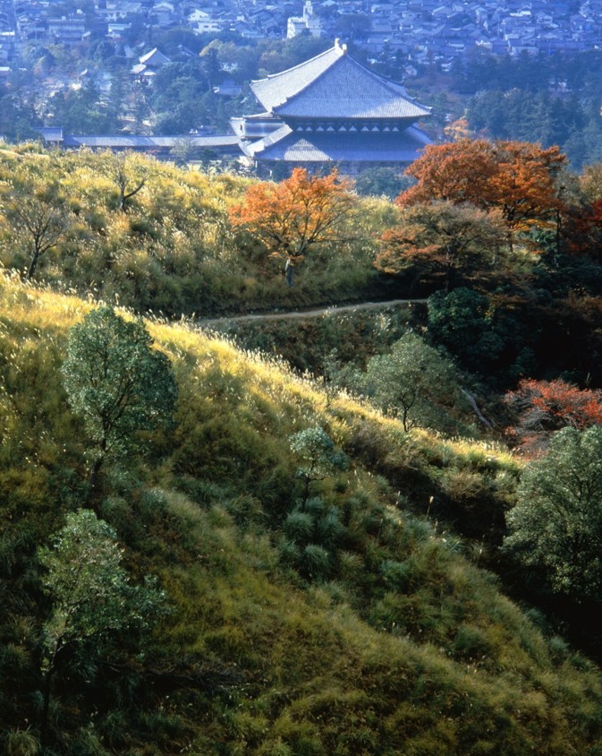 若草山、春日原始林、東大寺、二月堂的屋脊,都在眼前。